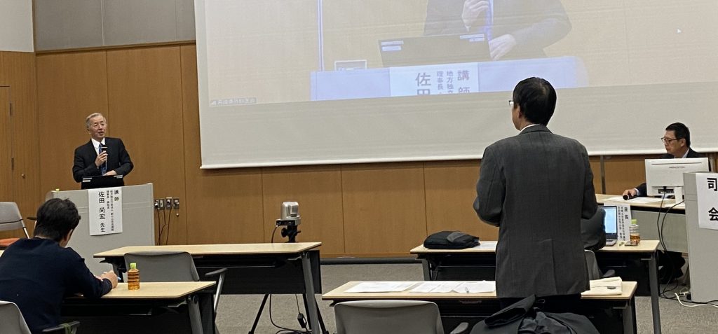 2025年11月14日宮崎県外科医会秋期講演会が宮崎県医師会館にて開催されました。現地参加13名、Web参加14名でした。特別講演は、2024年に第87回の日本臨床外科学会総会を開催された前自治医科大学病院長の佐多尚宏先生に「2040年sustainableな消化器外科診療を目指して」のご講演を頂きました。座長は宮崎大学外科学講座肝胆膵外科学分野教授七島篤志先生にお願いしました。ご講演の中で、消化器外科医が減少する中で、自治医科大学にて取り組まれた、変形労働時間制度(週4日間10時間勤務)、業務の効率化(仕事に人をつける。手術をパート毎に分けて術者をつける)の有用性、栃木県の中での地域での連携・分担、特に緊急手術を行う体制整備。医師会との連携強化を行い、外科医の確保に関する要望書を県へ提出し、外科医に対するインセンティブについて要望した。など精力的に外科医の勤務環境整備に取り組まれていることに感銘を受けました。宮崎においても外科医不足は深刻で、2040年に向けた取り組みの必要性を感じました。